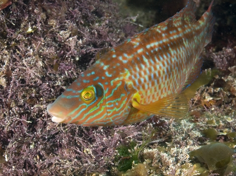 Up to 25cm long, but usually much smallerThought to be common, although wild wrasse are caught around the UK in large numbers for deployment as lice cleaners in Scottish salmon farms.