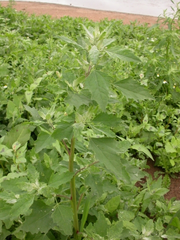 Fat hen is an upright plant with matt green, diamond-shaped leaves and spikes of small, white flowers. The whole plant tends to be covered in a white, mealy substance.