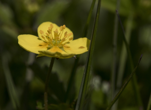 Tormentil can be found growing on acid grassland, heathland and moorland, but even pops up alongside roads. It bears yellow, buttercup-like flowers, but with only four petals (buttercups have five).